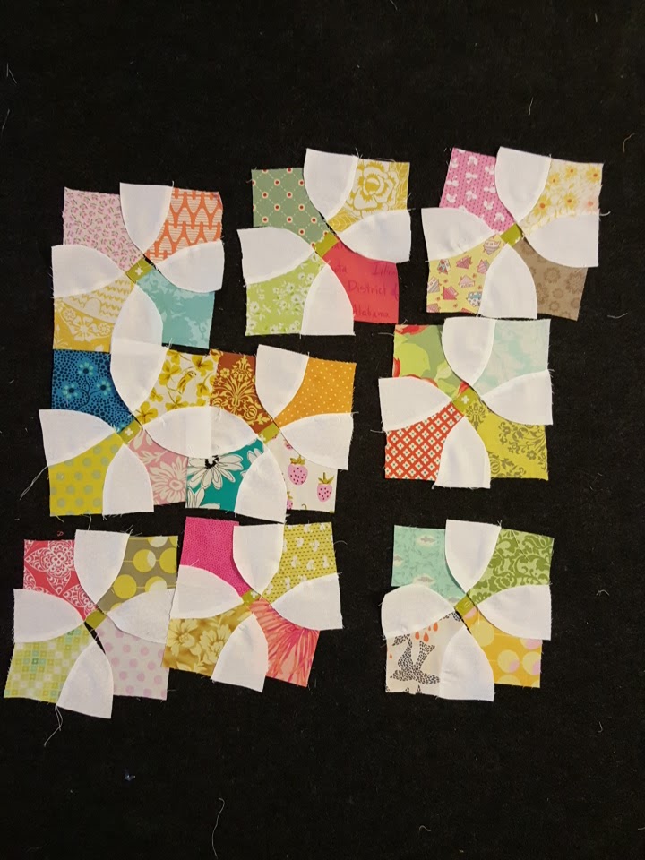 We both love the flowering snowball pattern and I found some templates online to make smaller blocks rather than making 12 inch accuquilt blocks (which I could have done).
