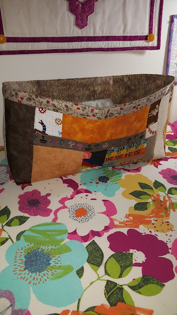 The scrap challenge this month was multi colored scraps -- I don't have my scraps sorted into a bundle of odd balls so I just choose to work on brown since that is the least amount of scraps and i knew it would be a busy one later on so whipped up my scrap bin before mid month.